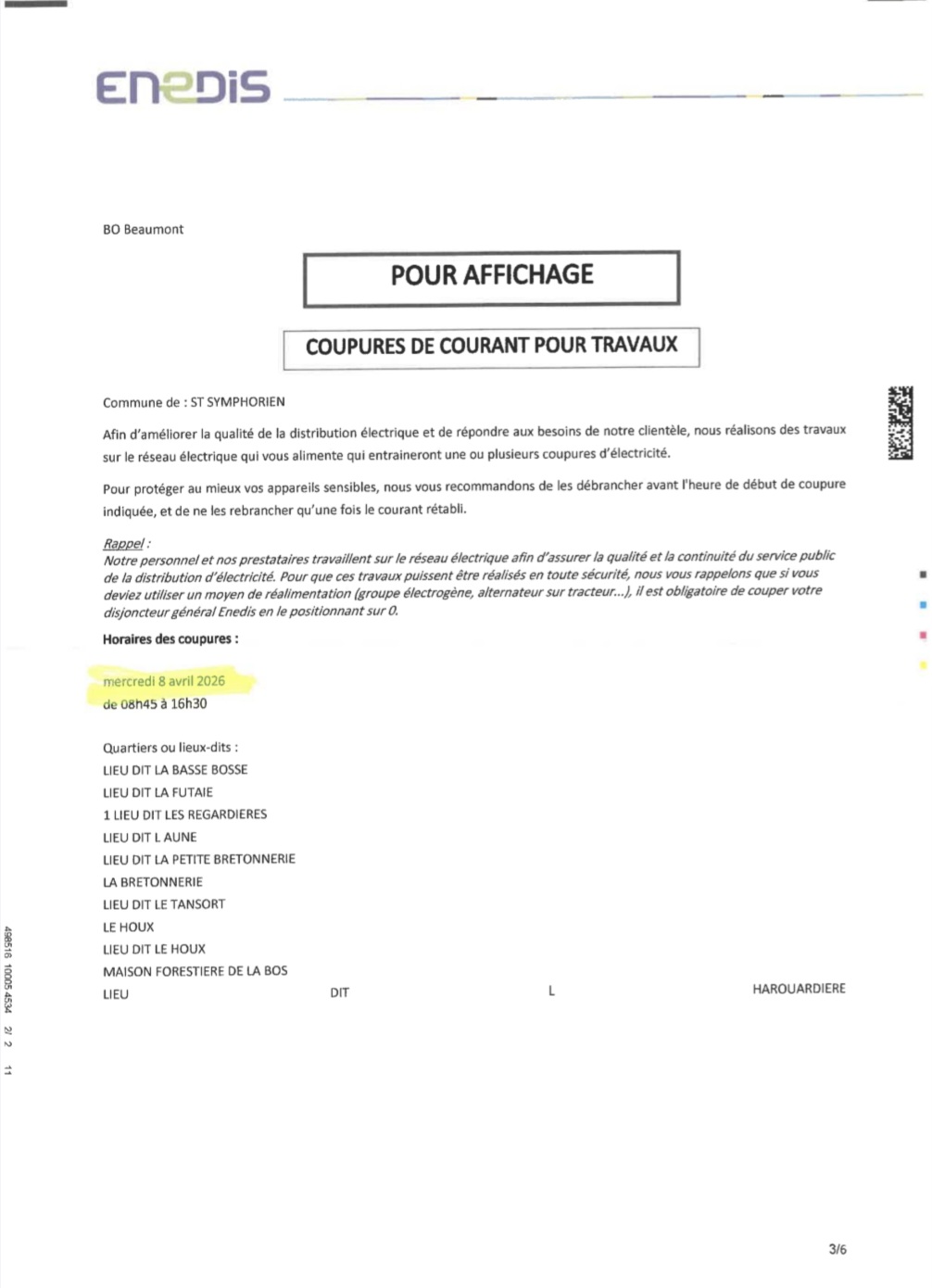 Coupure de courant pour travaux 8 avril 2026